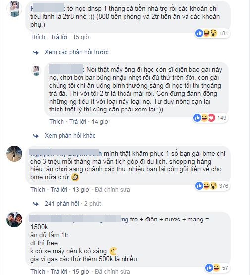 Tuy nhiên, bên dưới phần bình luận, đa phần các sinh viên đều khẳng định họ vẫn có thể tiêu 3 triệu/tháng, chưa kể vẫn có thể để dành tiền tiết kiệm mỗi tháng. Nhiều người còn phân tích sinh viên kia tiêu 5 triệu/tháng là quá “đại gia” và hoang phí. Mức lương của nhiều người mới ra trường cũng chỉ khoảng 5-6 triệu/ tháng. Nếu cứ chi tiêu như bạn sinh viên trên e là cũng sẽ không đủ.