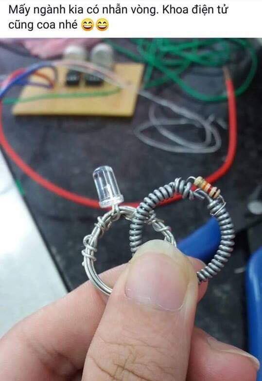 Mới đây dân mạng đang rộ lên một trào lưu mới, đó là nhìn nhẫn cầu hôn đoán ngay ngành học của các chàng trai. Những phiên bản nhẫn cầu hôn làm bằng dây đồng, nhôm hay ốc vít khiến dân mạng vô cùng thích thú. Quả thực, không mấy ai nghĩ con trai học khối ngành Kỹ thuật lại lãng mạn đến vậy cho đến khi nhìn thấy những chiếc nhẫn đáng yêu này.