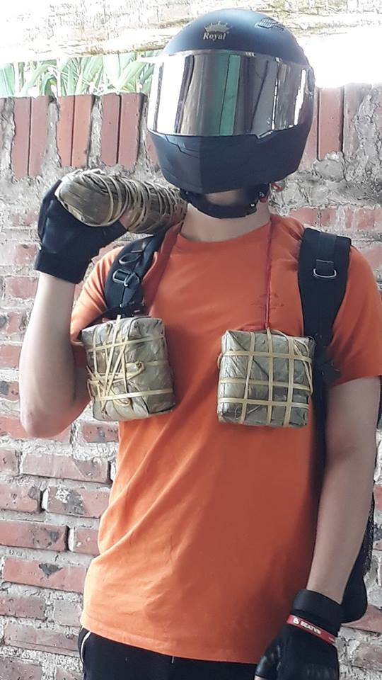 Mới đây, mạng xã hội xuất hiện hình ảnh cậu bạn đeo trên vai 2 chiếc bánh chưng kèm thêm 1 đòn bánh tét mà bố mẹ chuẩn bị sẵn khiến nhiều người vừa buồn cười, vừa đồng cảm.
