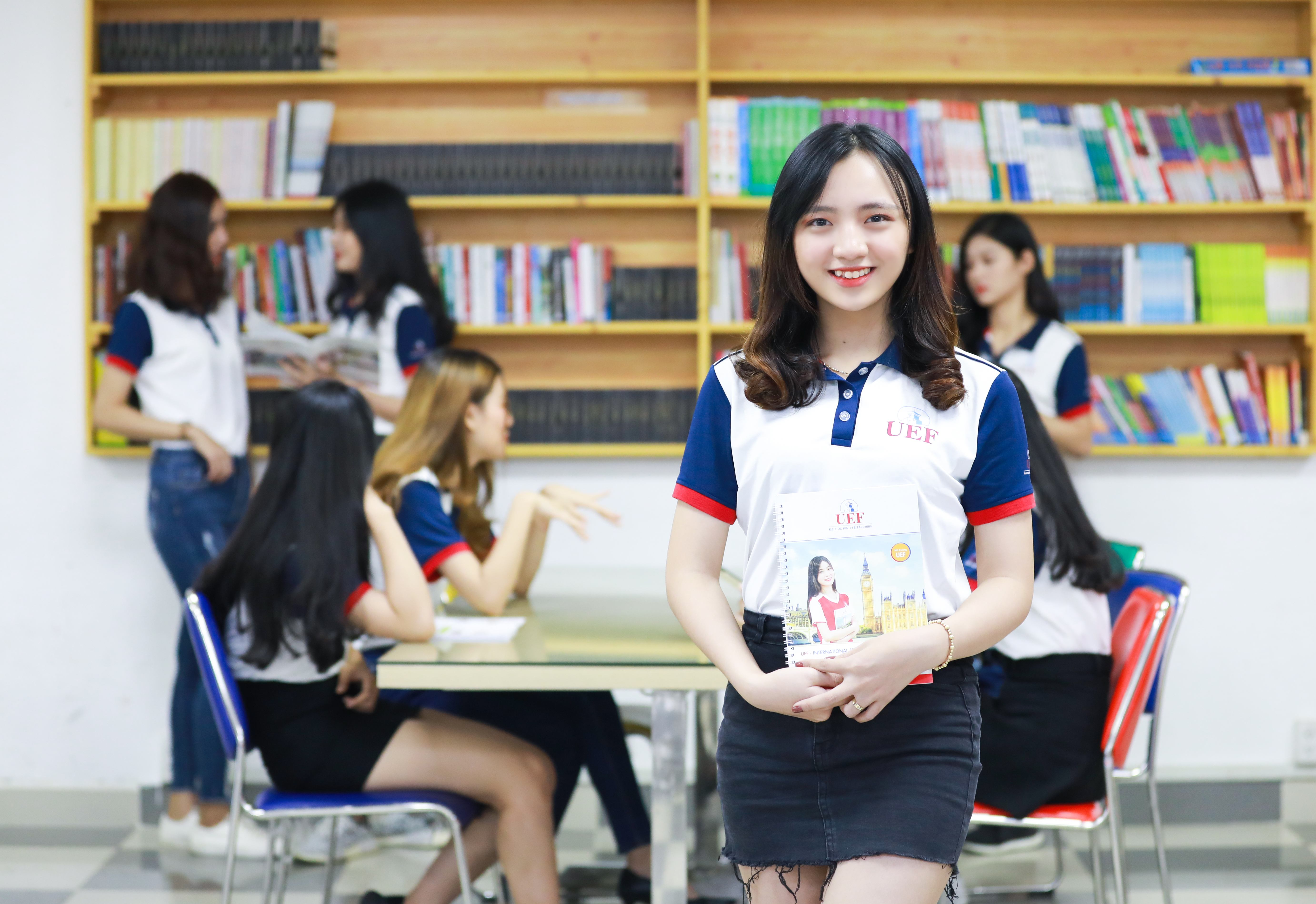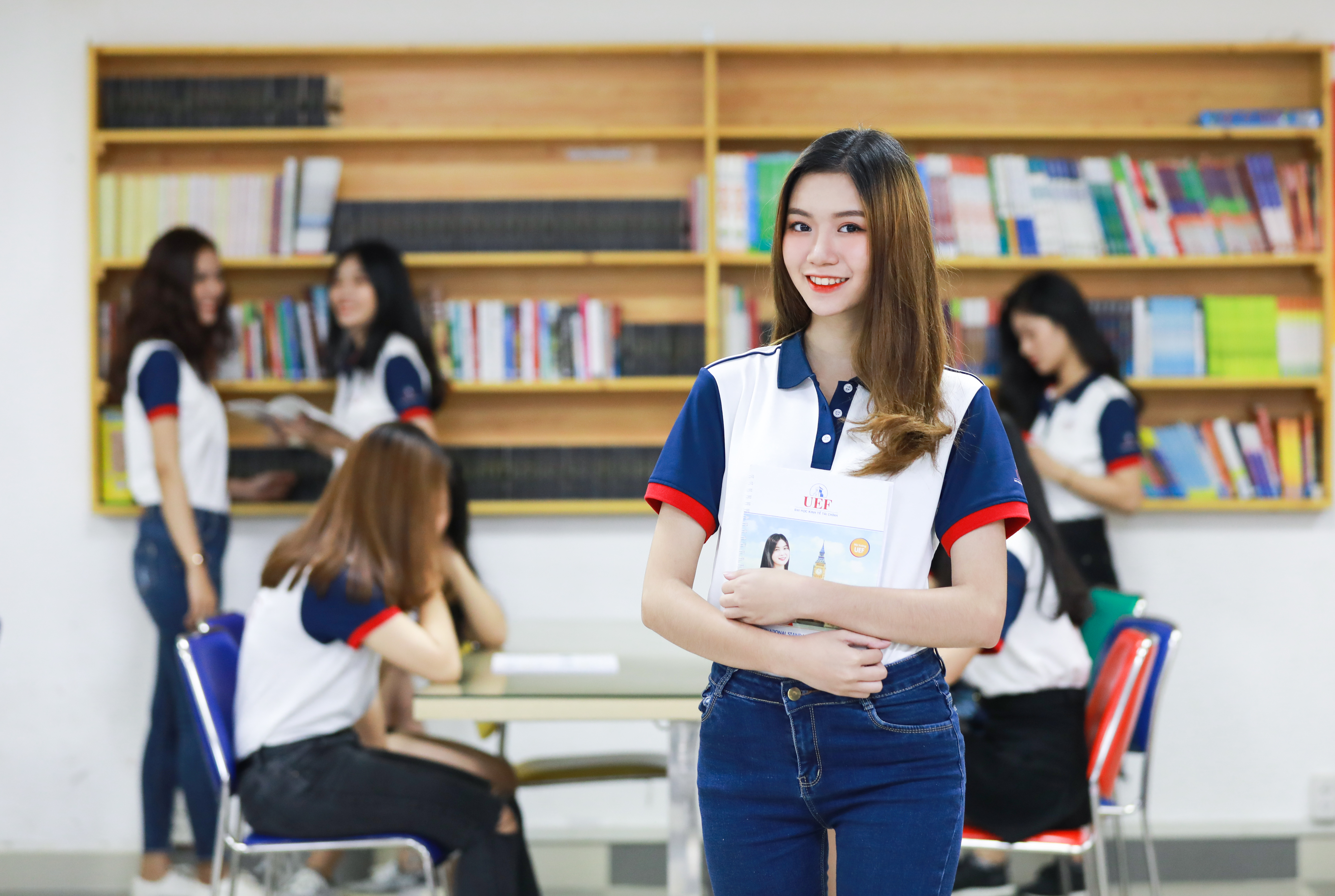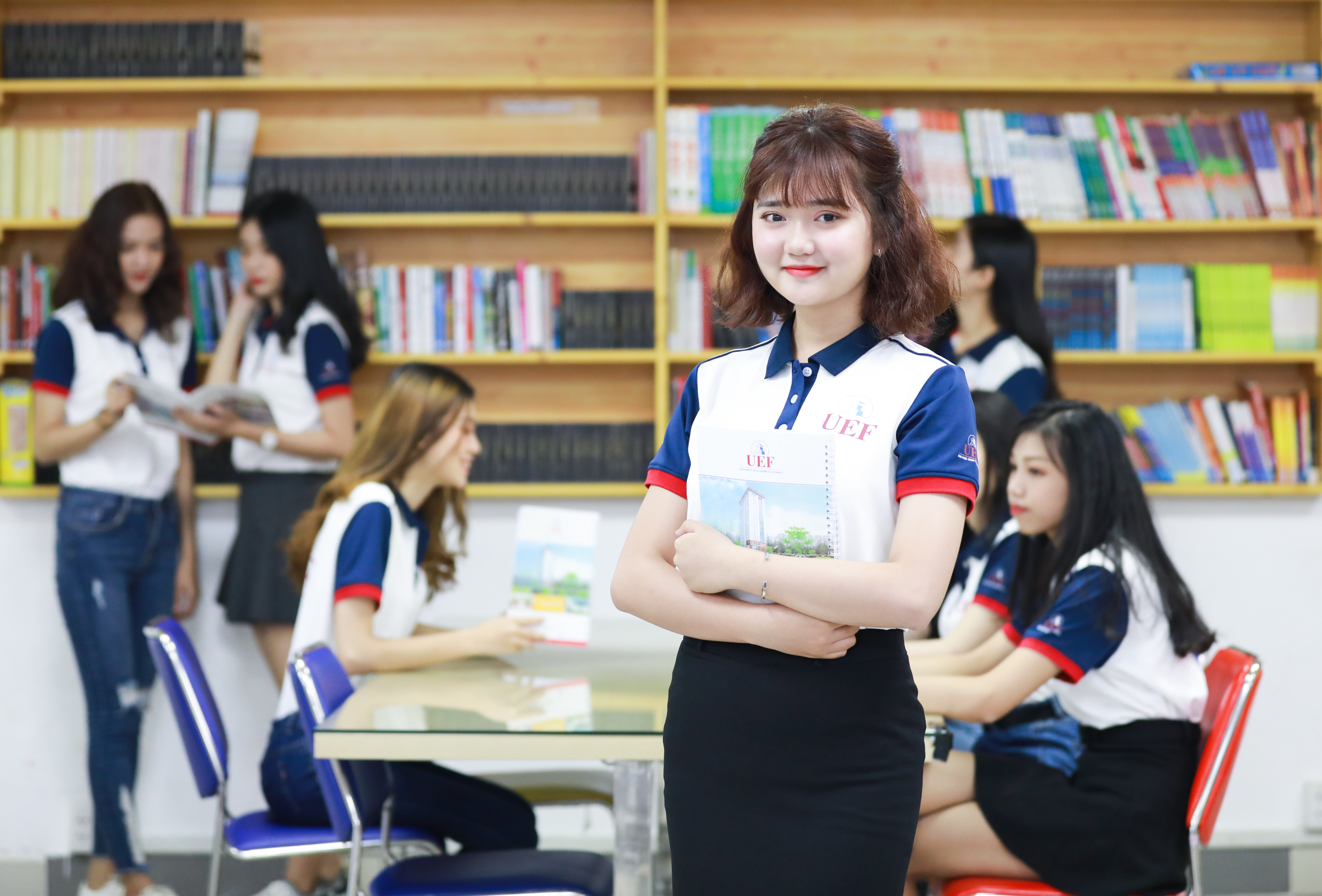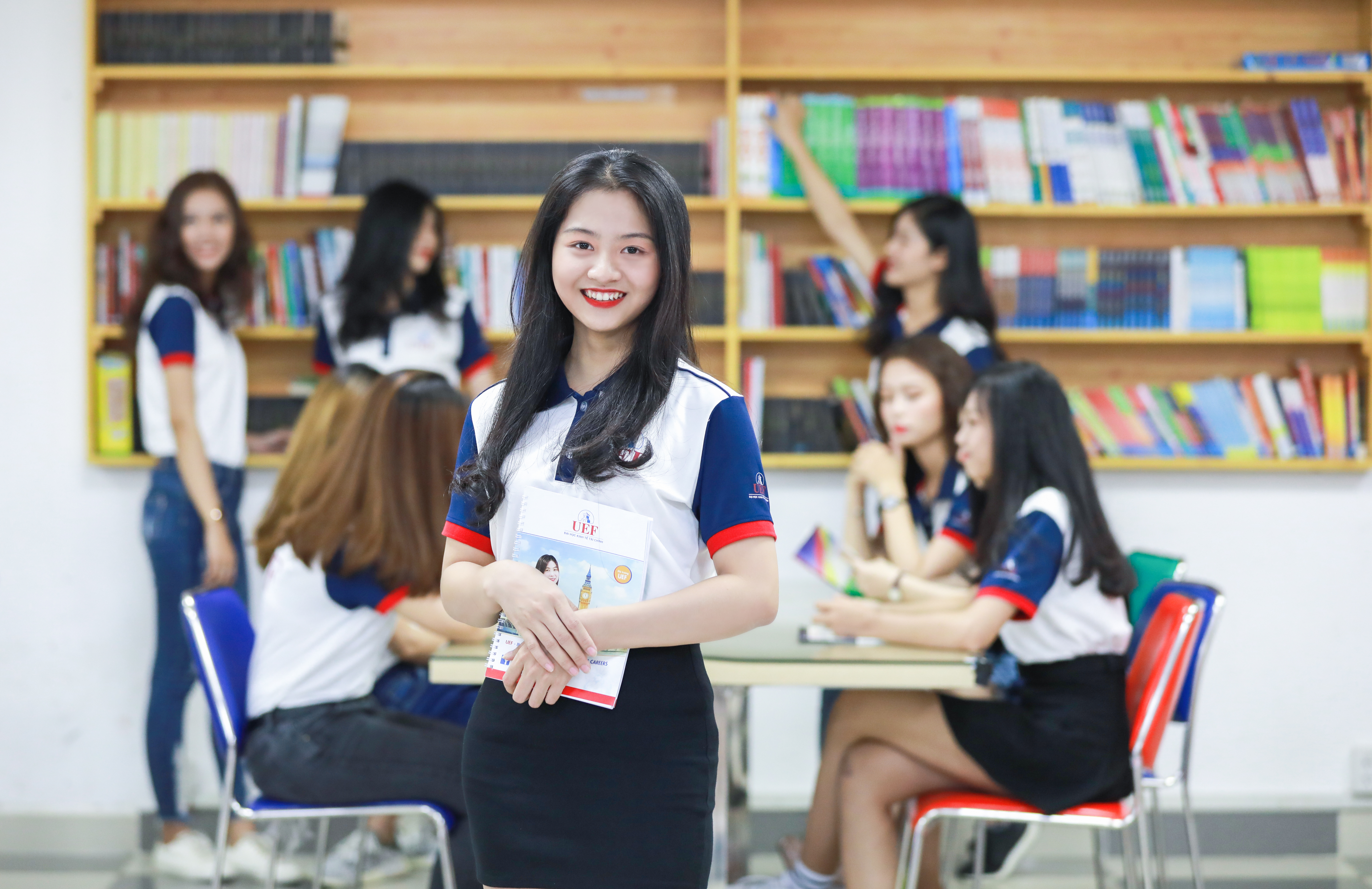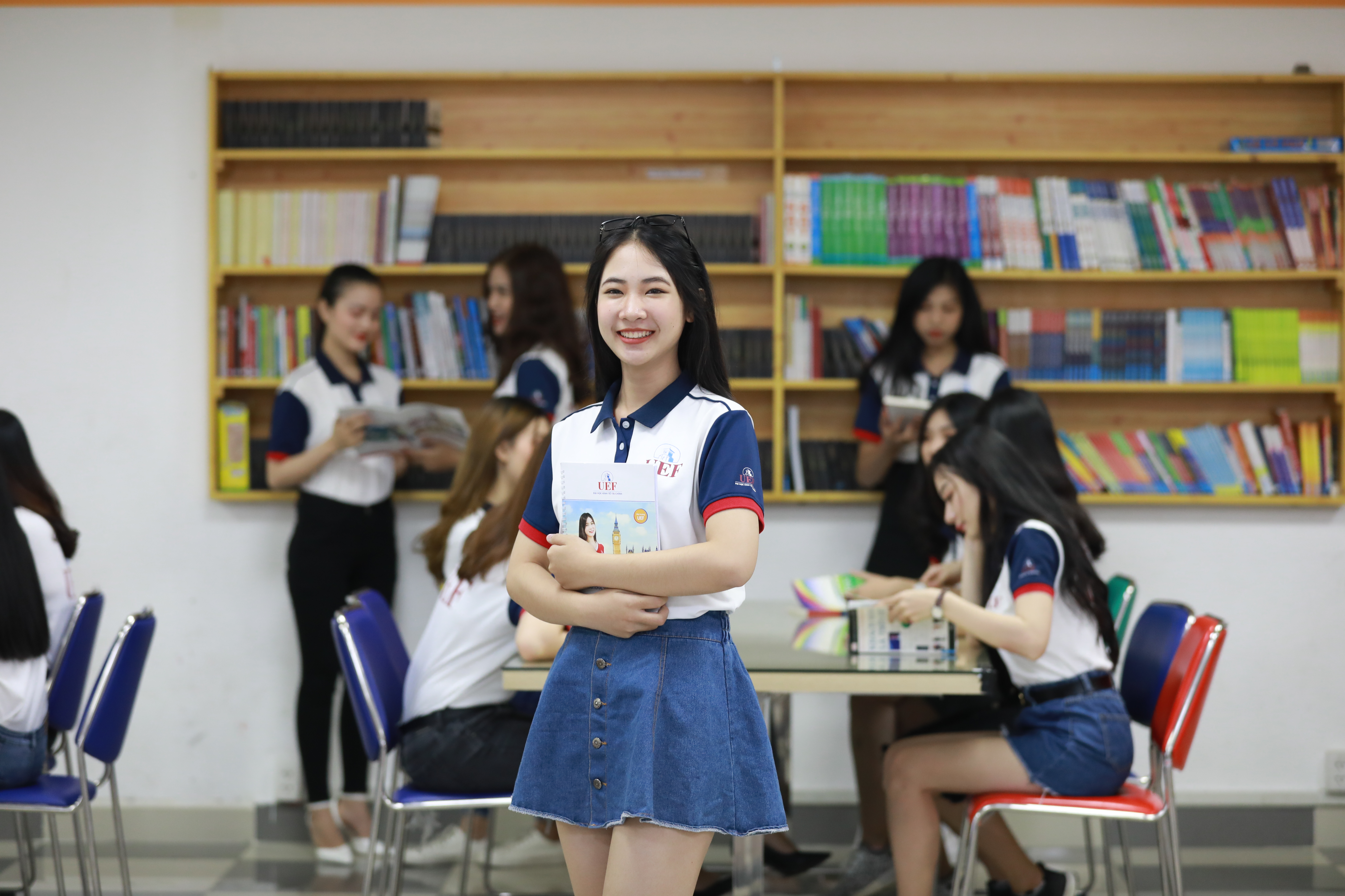 Nữ sinh UEF với nụ cười tươi rạng rỡ.