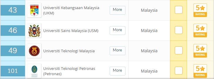 Tại Malaysia, trường Đại học Kebangsaan Malaysia (UKM) được đánh giá là ngôi trường uy tín hàng đầu. Ngôi trường này được thành lập ngày 18 tháng 5 năm 1970. Ngày nay, UKM đã mở rộng đến 12 khoa, 13 viện nghiên cứu, và 14 trung tâm cung cấp một loạt các chương trình học tập cả về nghệ thuật và khoa học. Đến nay, Trường đã đào tạo 117.075 sinh viên tốt nghiệp; 103.066 cử nhân, 13.015 thạc sĩ và 994 tiến sĩ.