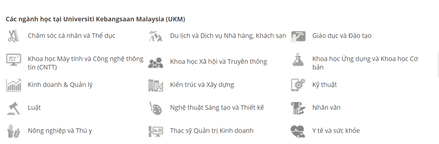 Các ngành học tại Trường đại học Kebangsaan Malaysia.