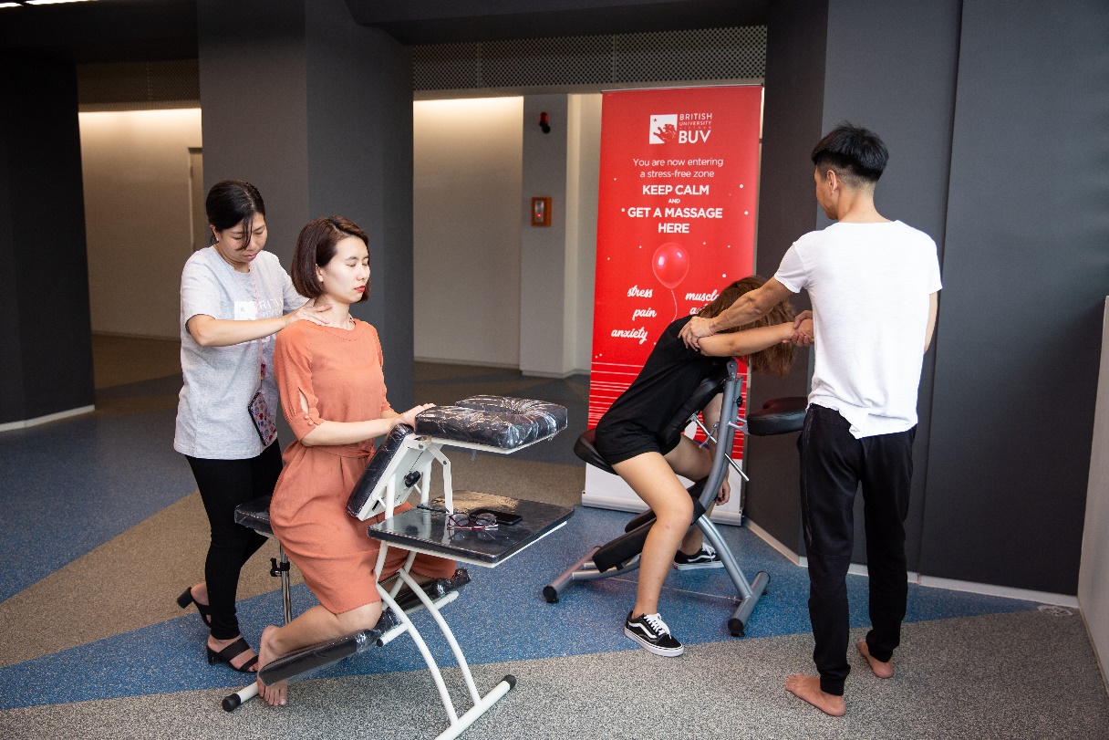 Không kém cạnh gì các trường đại học tại nước ngoài với những dịch vụ hỗ trợ sức khỏe và thể chất cho sinh viên tại campus, BUV cũng trang bị những dịch vụ thư giãn, giải tỏa căng thẳng lý tưởng cho các bạn sinh viên sau giờ học như dịch vụ massage miễn phí hàng tuần.