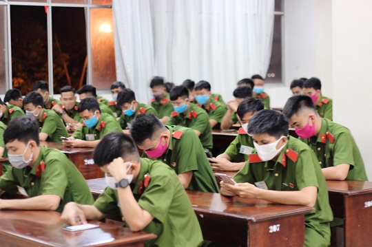 Học viên ĐH Cảnh sát nhân dân đeo khẩu trang khi đến lớp. Ảnh: Website ĐH Cảnh sát nhân dân .