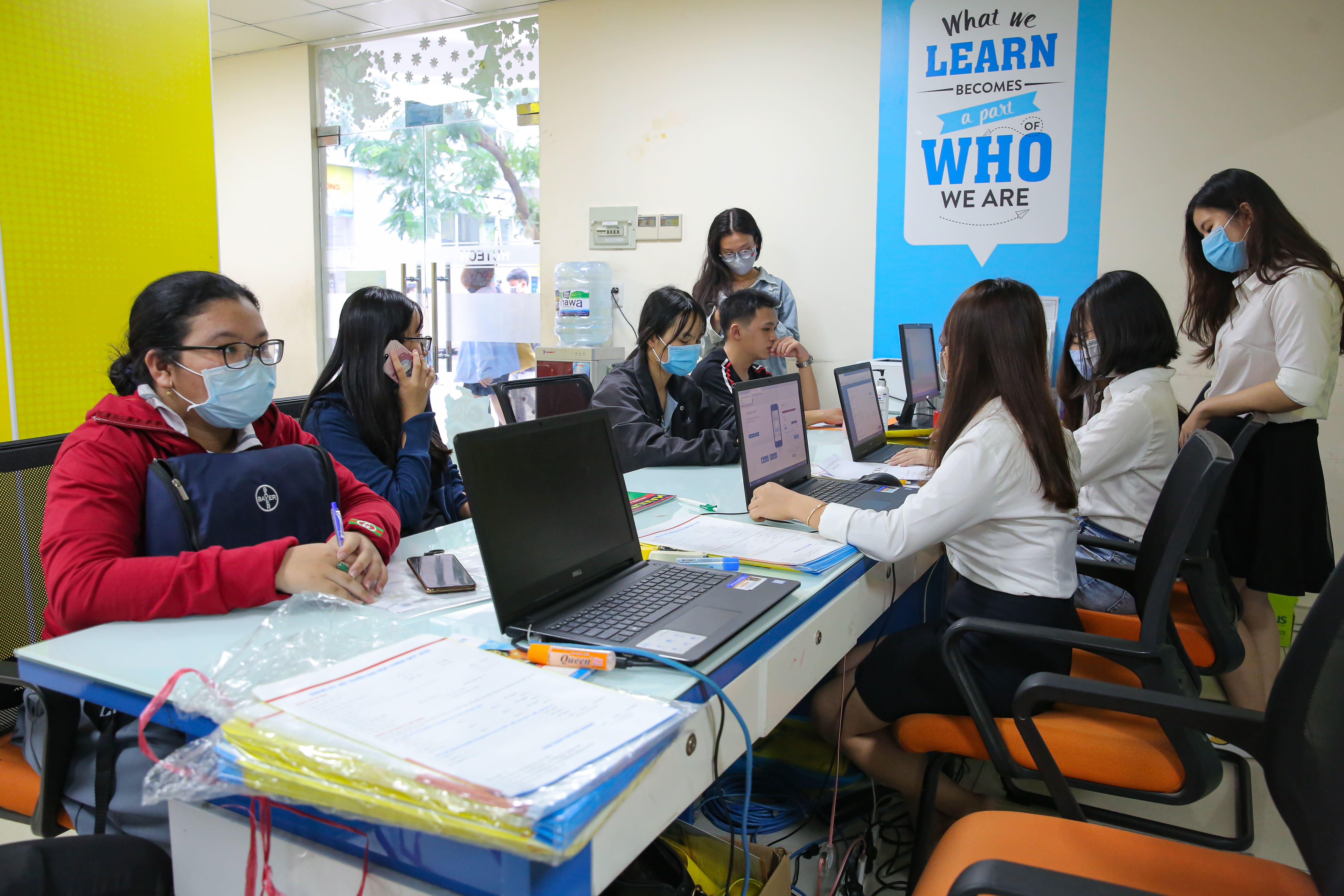 Phụ huynh và học sinh có mặt tại trường để nộp hồ sơ xét tuyển học bạ