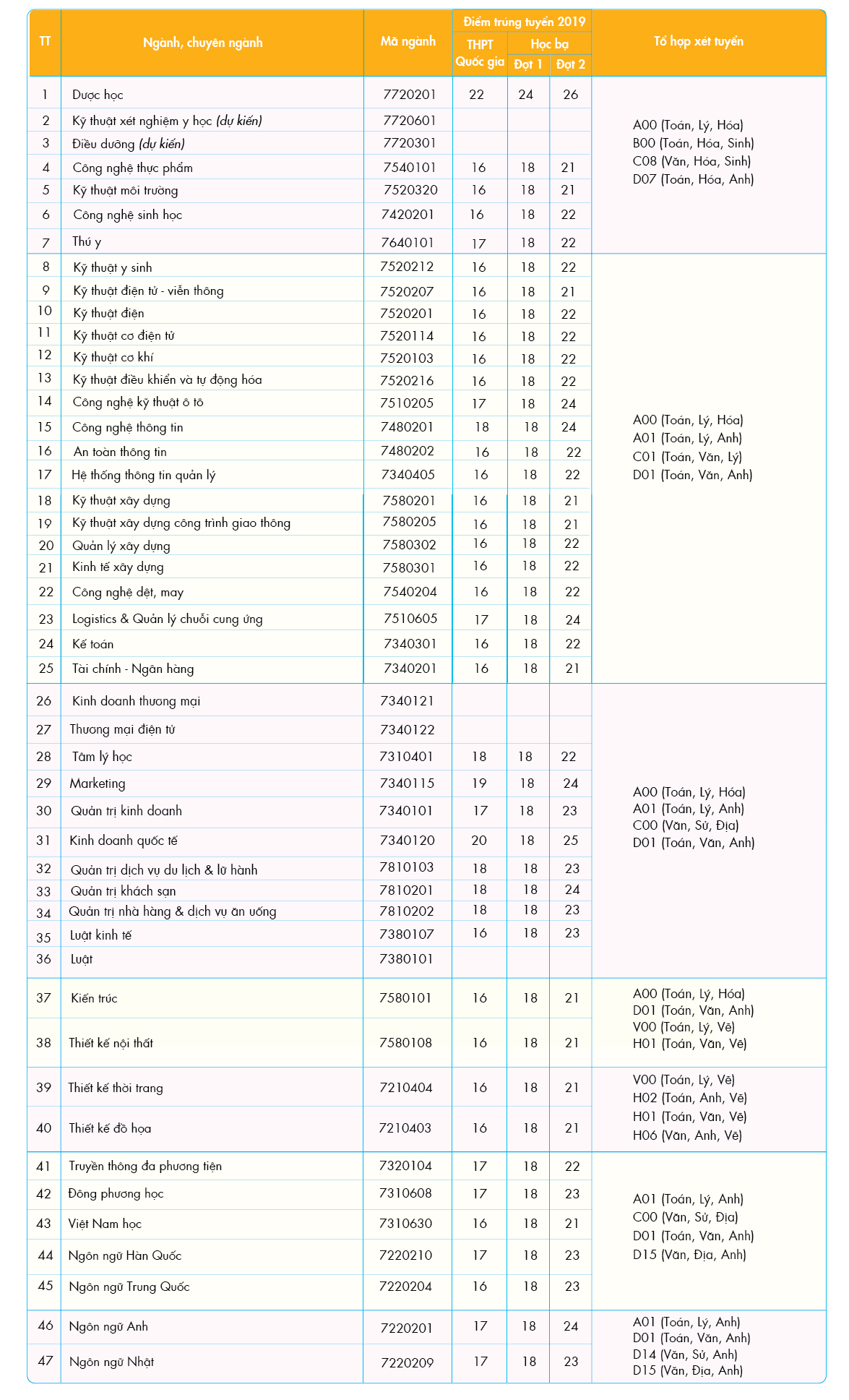 Trong đó, đối với phương thức xét tuyển kết quả kỳ thi tốt nghiệp THPT 2020 (chiếm 65% tổng chỉ tiêu xét tuyển), HUTECH thực hiện theo quy định của Bộ GD&ĐT về thời gian xét tuyển, lệ phí xét tuyển, cách thức đăng ký. Thí sinh cần tham dự kỳ thi tốt nghiệp THPT 2020 và có điểm thi đạt từ ngưỡng điểm đảm bảo chất lượng đầu vào do HUTECH quy định.