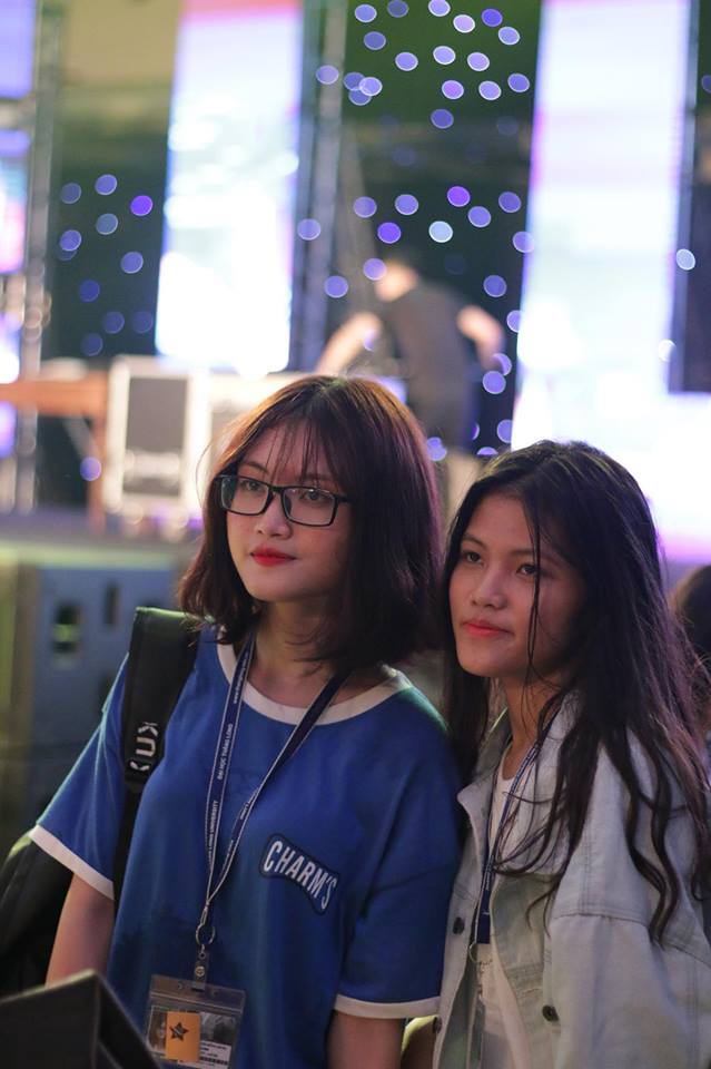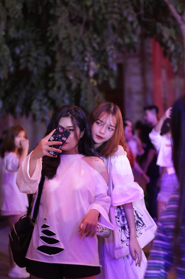 Nhiều bạn nữ tranh thủ chụp ảnh trong lễ hội chào đón tân sinh viên.