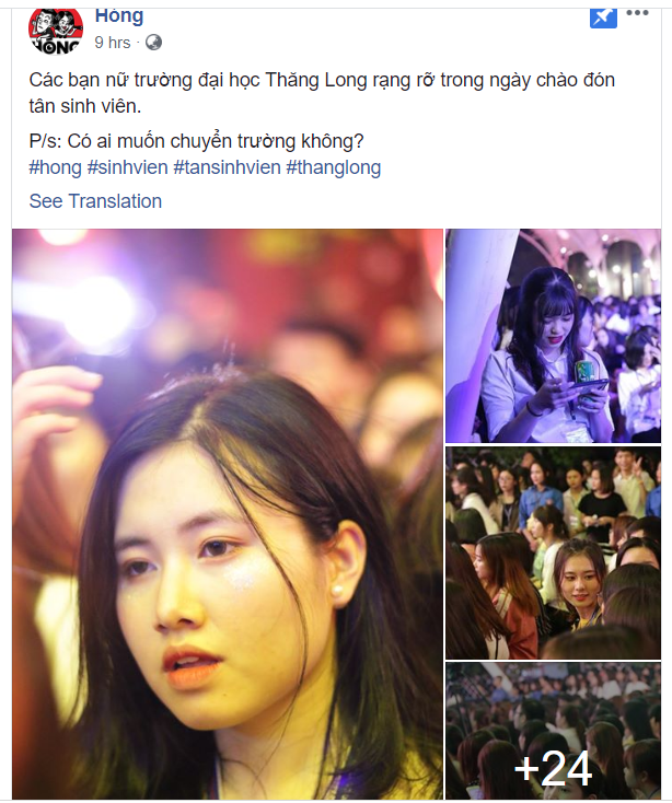 Bộ ảnh các bạn nữ xinh đẹp của ĐH Thăng Long được chia sẻ trên mạng với dòng caption: “Các bạn nữ trường Đại học Thăng Long rạng rỡ trong ngày chào đón tân sinh viên. Xem xong đã ai muốn chuyển trường chưa?”.