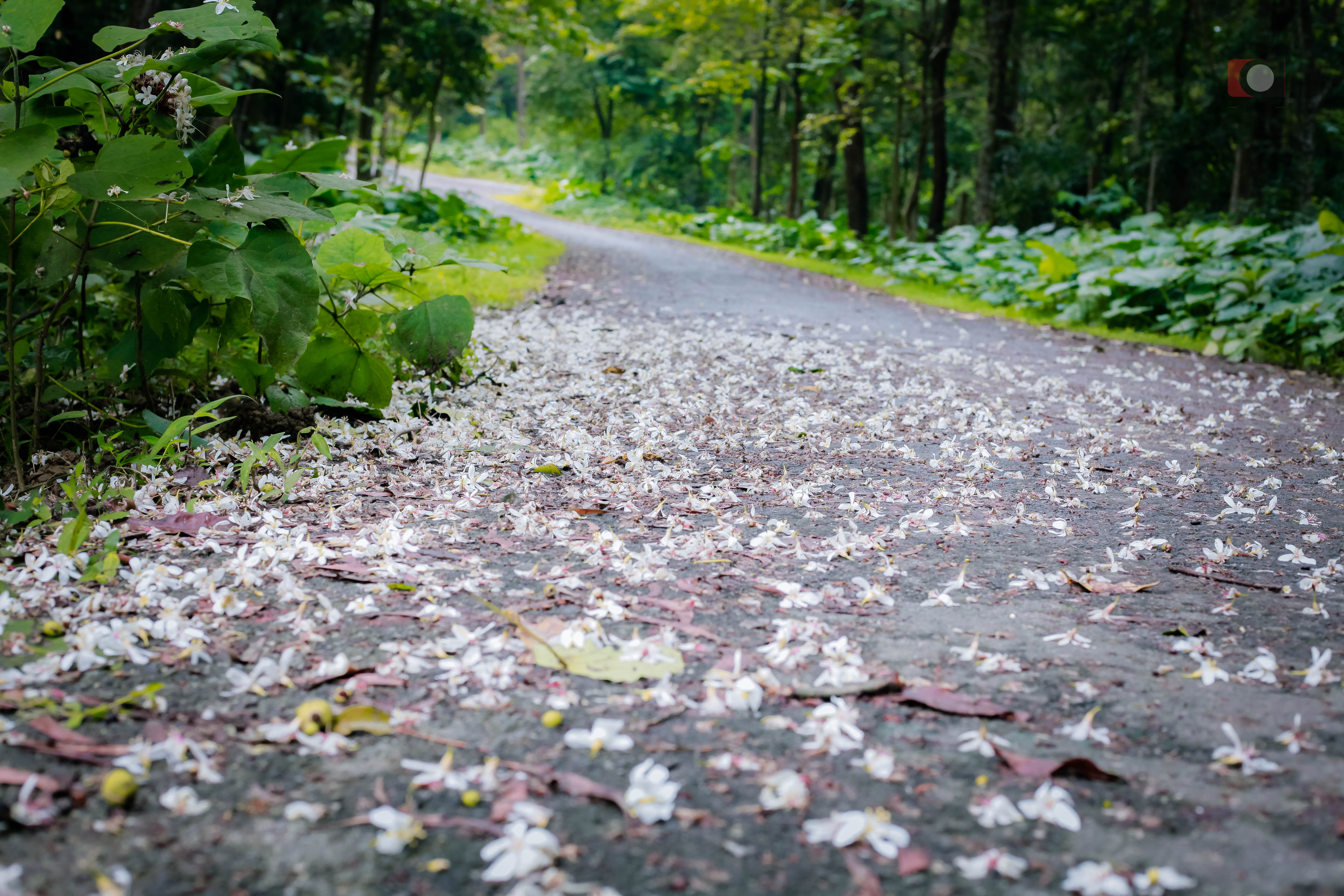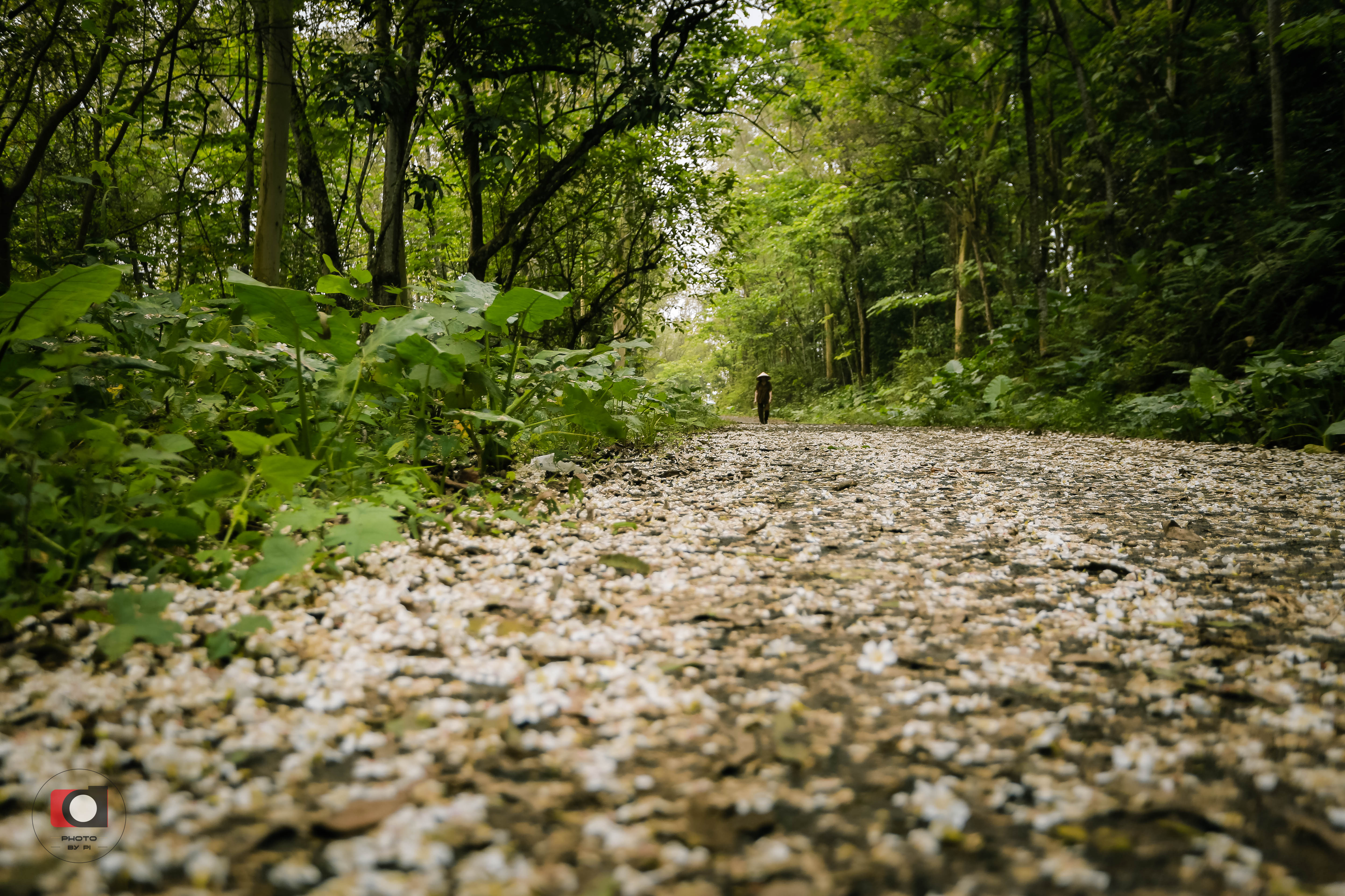 Hoa trẩu rơi phủ trắng con đường.