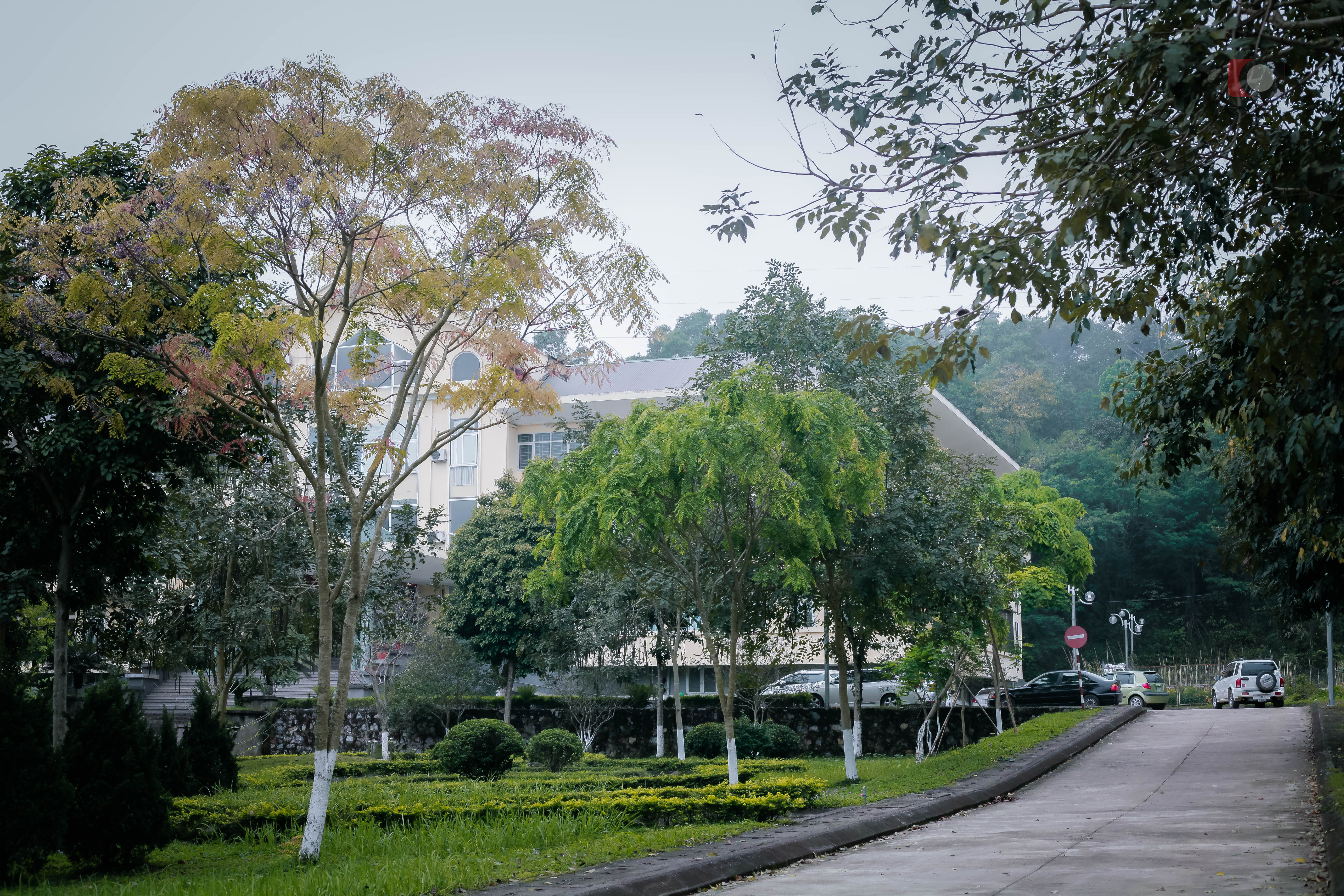 Trường nằm ngoại ô Hà Nội nên cực kì yên tĩnh, tự nhiên, phù hợp cho sinh viên học tập và nghiên cứu.