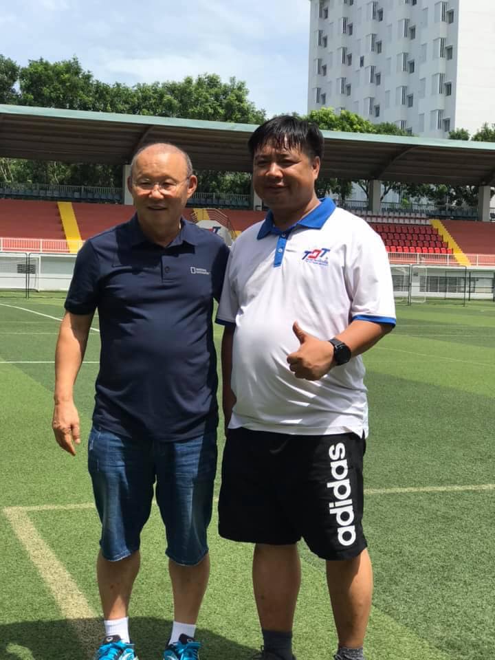 HLV Park Hang Seo chụp ảnh cùng ông Nguyễn Văn Bắc - Trưởng khoa Khoa học thể thao, trường ĐH Tôn Đức Thắng