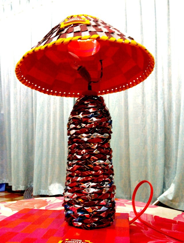 Thầy Lê Quốc Toàn cho biết, hàng ngày thấy bao bì của các loại thực phẩm như mì gói, túi cà phê, gói snack,… sau qua sử dụng không bán ve chai hay tái sử dụng lại được mà chỉ bỏ đi, khó phân hủy, gây ảnh hưởng không nhỏ đến môi trường. Lúc này, thầy nghĩ tại sao không tận dụng các loại vỏ bao bì nói trên để tạo ra sản phẩm phục vụ cho cuộc sống, sinh hoạt của con người.