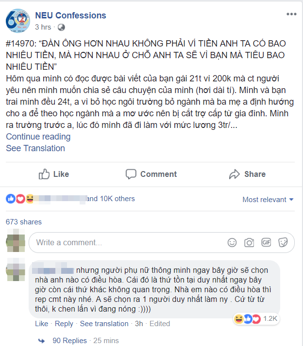“Hôm qua mình có đọc được bài viết của bạn gái 21 tuổi vì 200k mà chia tay người yêu nên mình muốn chia sẻ câu chuyện của mình.