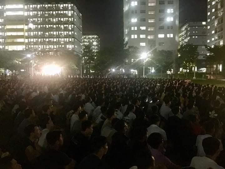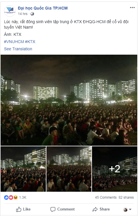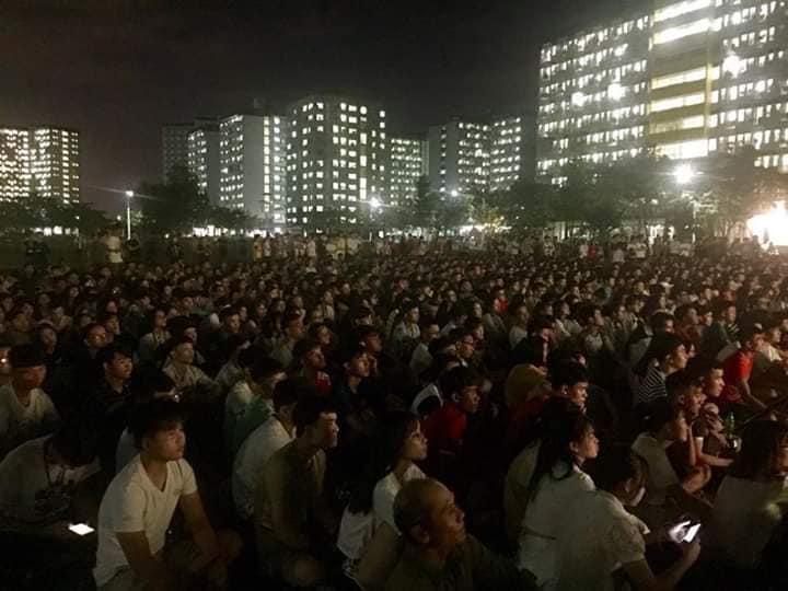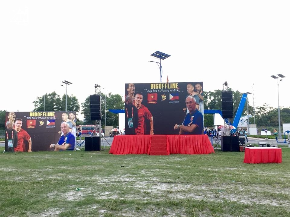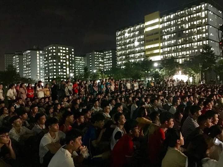 Không có điều kiện bay đến Philipines theo dõi thầy trò HLV Park-Hang-seo xung trận, hàng nghìn snh viên ĐH Quốc gia TP.HM đã tập trung trước sân thể thao của khu Ký túc xá tại quận Thủ Đức để theo dõi trận bán kết lượt đi qua màn hình LED cỡ lớn.