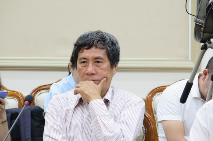 Ông Bùi Minh Bình, Hiệu trưởng Trường THPT Long Thới, tại cuộc họp Ảnh - Trung Hiếu