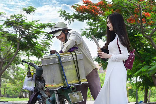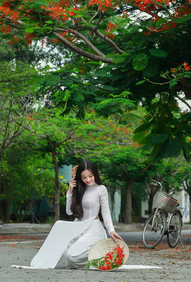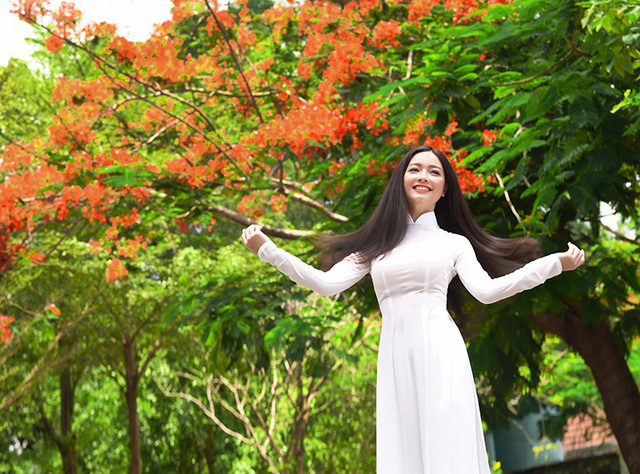 Bộ ảnh chụp với hoa phượng vĩ mùa hè là ý tưởng của Quỳnh Trâm cùng với nhiếp ảnh Hoàng Minh Hóa.