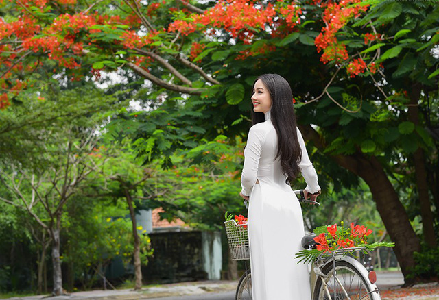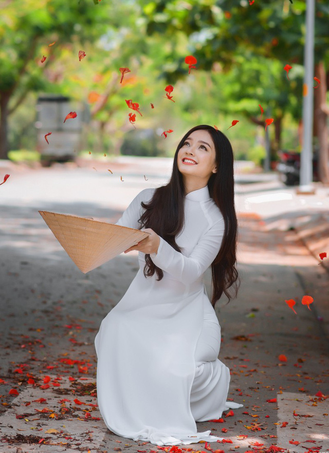 Đây không phải là lần đầu tiên Trâm chụp ảnh với áo dài. Nhiều người quen thường nói Trâm rất hợp với trang phục này.