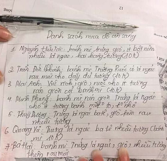 Bảng ghi chép đồ ăn sáng cần mua hộ chắc chắn khiến khổ chủ khóc ngất