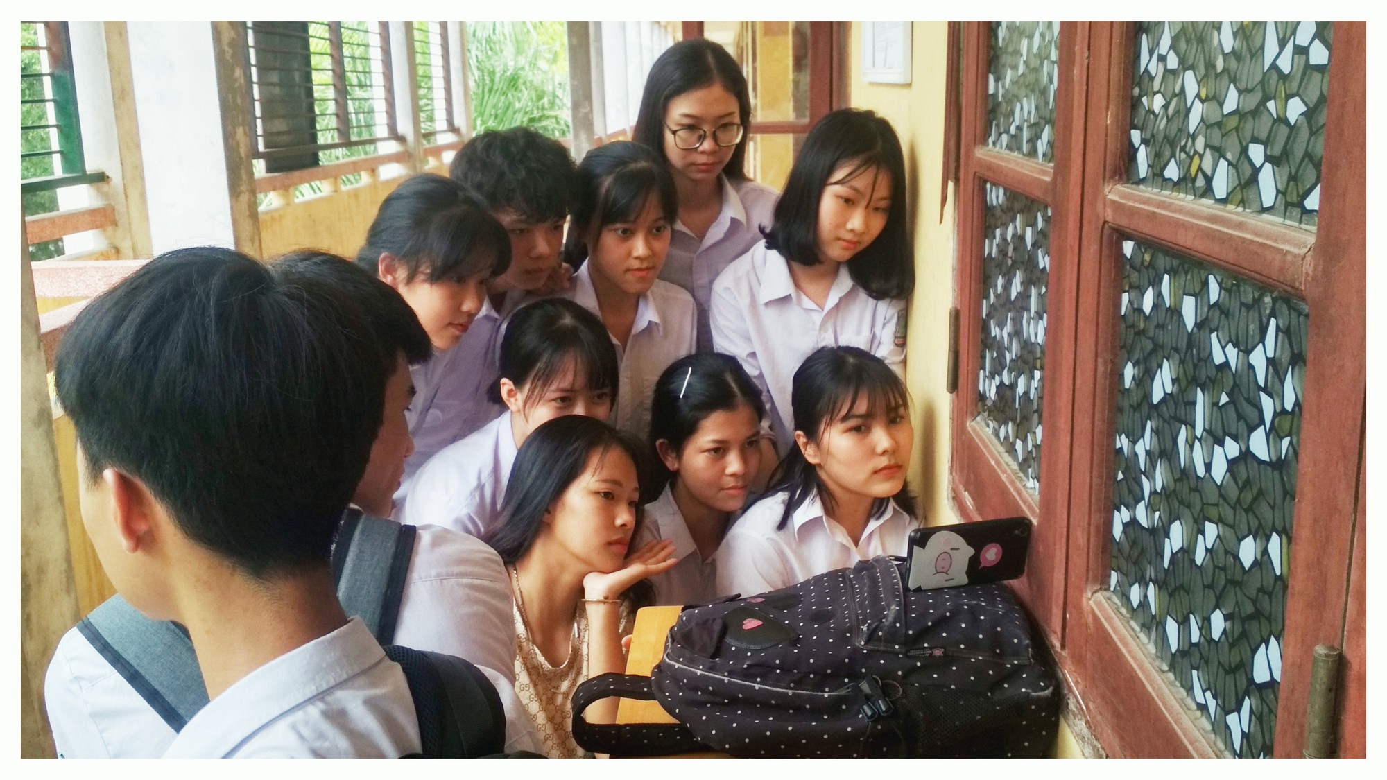 Áp lực học tập khiến ai cũng trở nên “đơ như cây cơ” thế này ư? Trần Vân, đại diện lớp 12A13 chia sẻ: “Những người bạn xuất hiện trong ảnh là hội bạn thân bàn cuối. Năm học kết thúc nên tụi mình muốn làm một bộ ảnh lưu giữ kỷ niệm.
