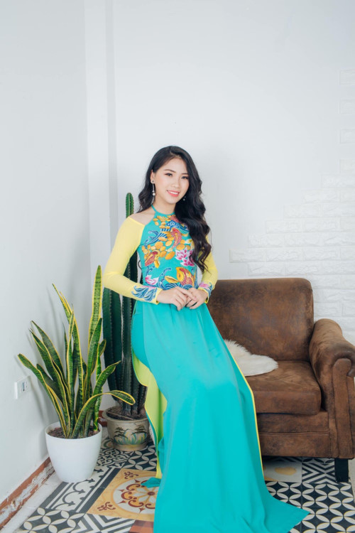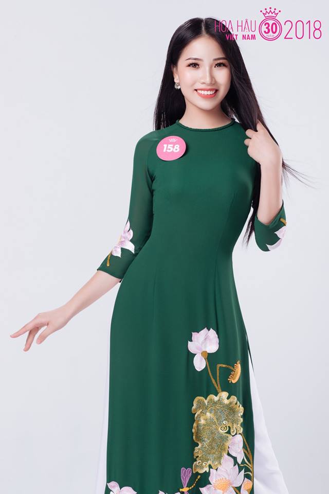 Nguyễn Thị Ngọc Nhung duyên dáng trong tà áo dài tham gia Hoa hậu Việt Nam 2018.