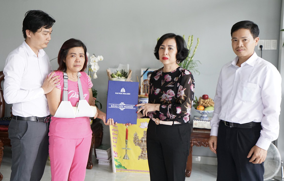 Được biết trong buổi sáng ngày 6/7, trường ĐH Hoa Sen đã tổ chức lễ tốt nghiệp lần thứ 34 cho các sinh viên của trường. Ngay trong buổi chiều cùng ngày, Hiệu trưởng trường ĐH Hoa Sen - GS.TS Mai Hồng Quỳ cùng các lãnh đạo của trường đã gấp rút tìm đến gia đình Hải Nguyên để trao bằng tốt nghiệp của sinh viên này cho bà Nguyễn Thị Liên, mẹ Hải Nguyên.