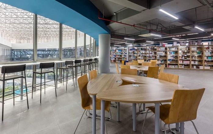 Không chỉ chú tâm vào vẻ bề ngoài, các hạng mục bên trong của cơ sở mới này cũng được lãnh đạo nhà trường đầu tư kỹ càng. Thiết kế chủ đạo của trường đơn giản, hiện đại và sang trọng theo phong cách châu Âu, nổi bật nhất có thể kể đến chính là khu sảnh với thiết kế bằng kính hay thư viện thông minh với nhiều đầu sách phong phú, đáp ứng đầy đủ nhu cầu học tập và tham khảo tài liệu của sinh viên.