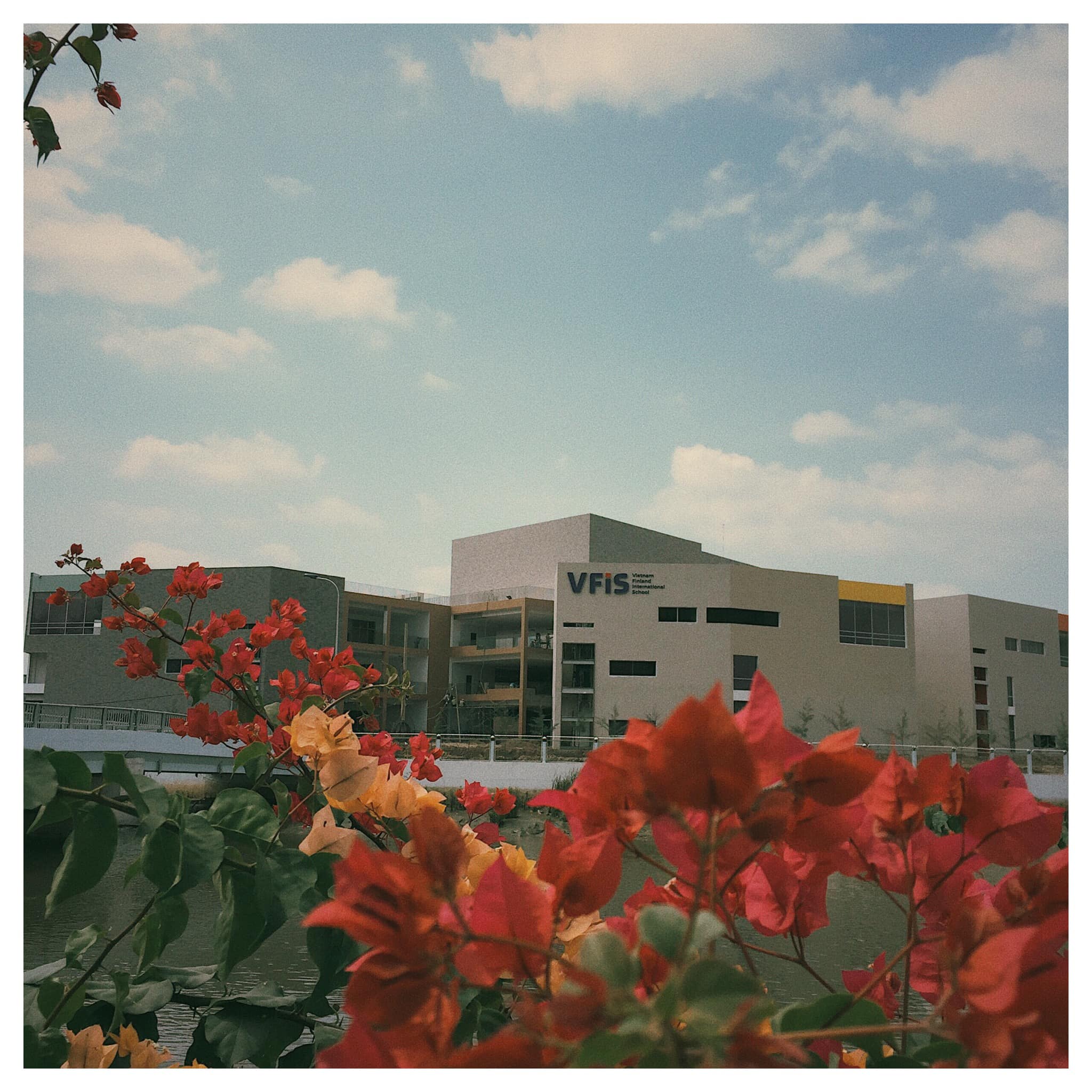 Những con đường rợp hoa dẫn vào các dãy phòng học.