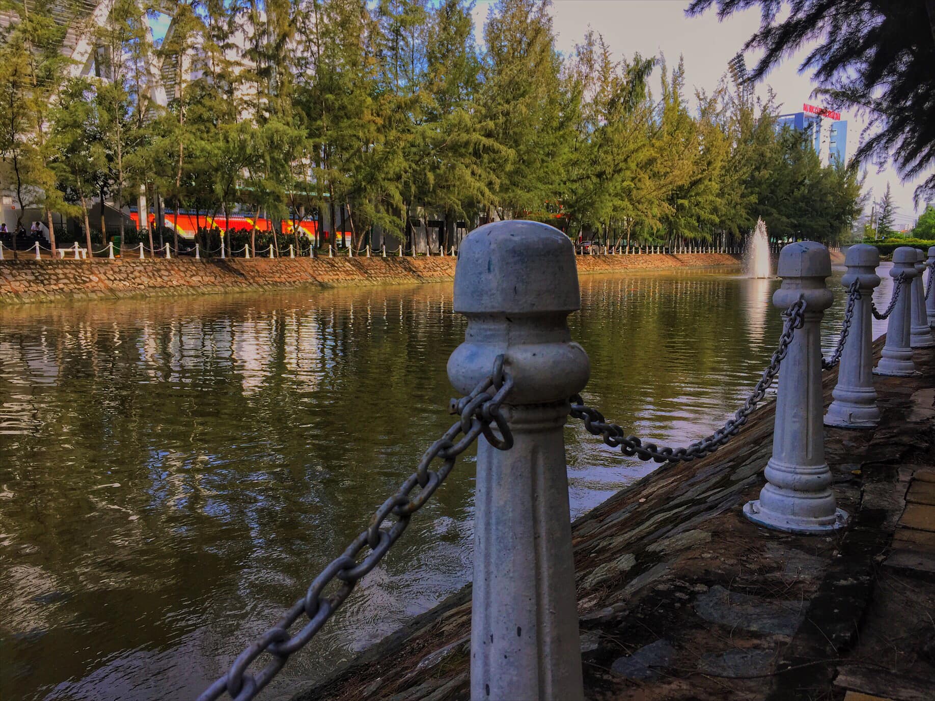 Một hồ nước tại khuôn viên trường Tôn Đức Thắng, các bạn sinh viên có thể đi dạo mỗi buổi chiều để thả mình vào không gian lý tưởng này.
