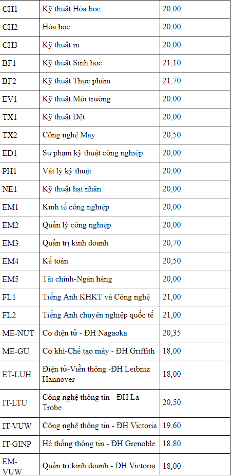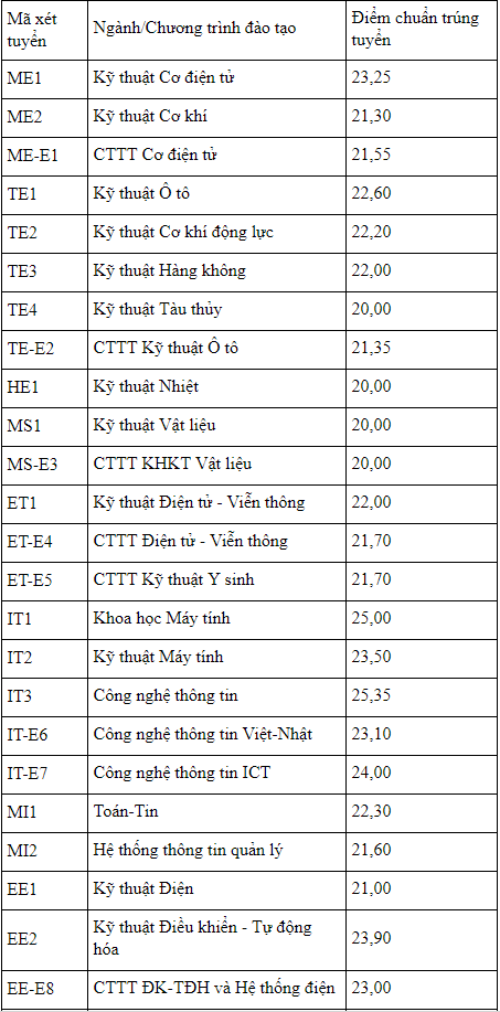 Điểm chuẩn Đại học Bách khoa Hà Nội