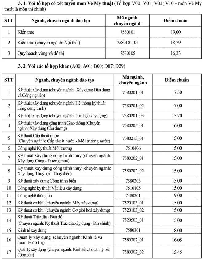 Điểm chuẩn của ĐH Xây dựng Hà Nội.