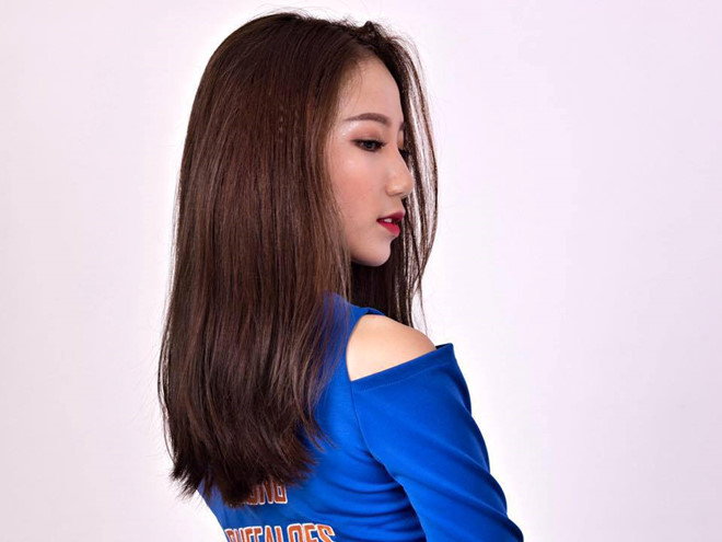 Khánh Linh duyên dáng trong màu áo xanh của Hanoi Buffaloes. Ảnh: FBNV.