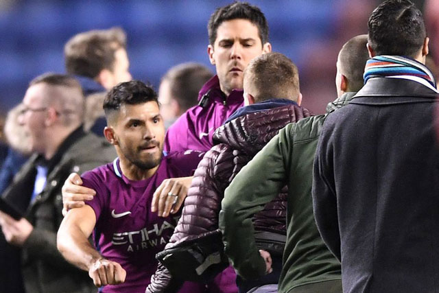 Quá bực tức vì bị chế giễu, tiền đạo Sergio Aguero đã thẳng tay đấm vào mặt một CĐV Wigan “to miệng” mỉa mai anh. Thậm chí, nếu không có các đồng đội và thành viên BHL can ngăn thì ngôi sao người Argentina còn muốn “tẩn” cho đối phương một trận nên thân.