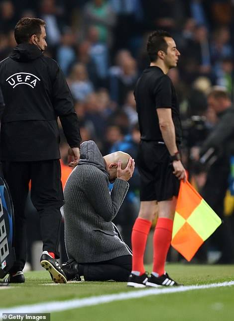 Pep Guardiola đã gục xuống sân khi trọng tài thổi tiếng còi kết thúc trận đấu. Thêm một lần nữa, mục tiêu giúp Manchester City vô địch Champions League của Pep thất bại.