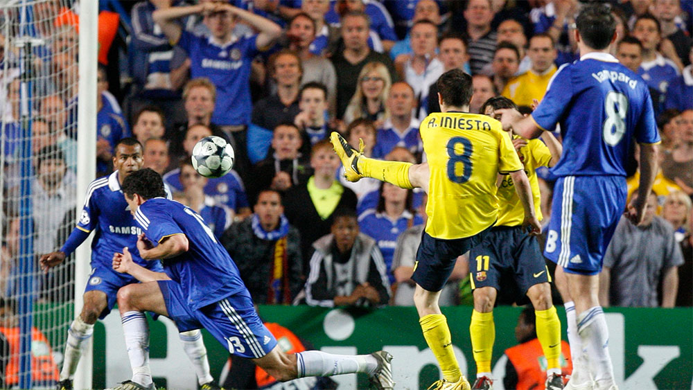 Ở trận lượt đi, hai đội hòa nhau không bàn thắng. Đến trận lượt về, Chelsea bất ngờ nắm lợi thế bằng pha dứt điểm khó tin của Michael Essien ngay ở phút thứ 9. Hơn 80 phút còn lại, Barcelona chìm trong bế tắc. Họ phải chơi thiếu người, và gần như không còn phương án tấn công khả thi nữa. Ngoại trừ Iniesta. Anh nhận pha nhả bóng của Messi, rồi tung chân dứt điểm ở cự ly khoảng 20 mét. Bóng bay thẳng vào lưới dù Petr Cech đã cố bay người cản phá.