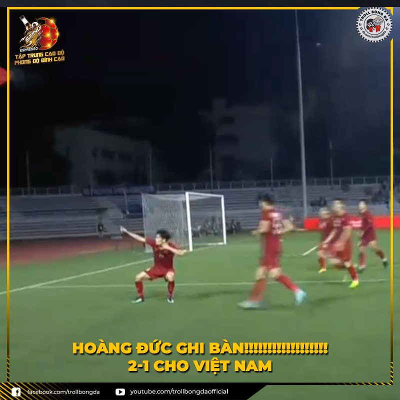 Thành Chung hóa người hùng với cú đánh đầu ngược gỡ hòa cho U22 Việt Nam. (Ảnh của Troll bóng đá)