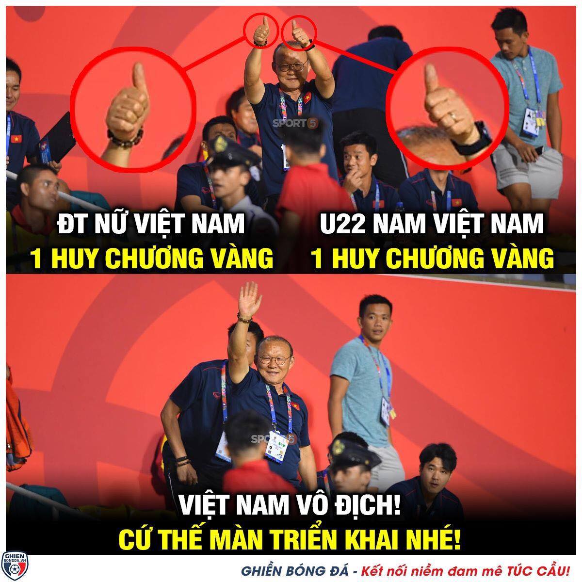 Tuyển nữ Việt Nam gọi, người hâm mộ bóng đá Việt Nam chờ đoàn quân của HLV Park Hang Seo trả lời. (Ảnh của Ghiền bóng đá)