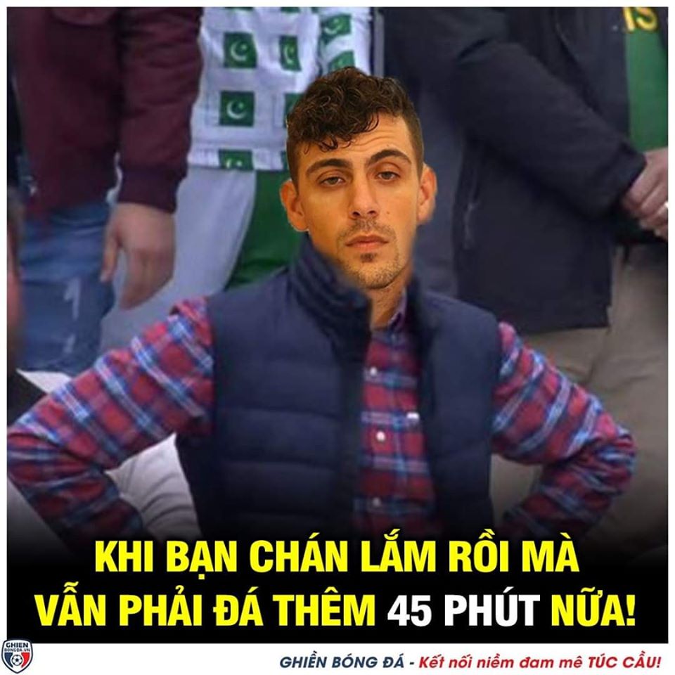 HLV điển trai của Campuchia ngẫn ngơ sau khi bị U22 Việt Nam đè đẹp sau 45 phút thi đấu và phải chịu đựng thêm 45 phút nữa. (Ảnh của Ghiền bóng đá)