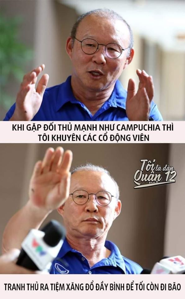 HLV Park Hang Seo kêu gọi người dân Việt Nam đổ đầy bình để đi bão ăn mừng chiến thắng. (Ảnh của Tôi là dân quận 12)
