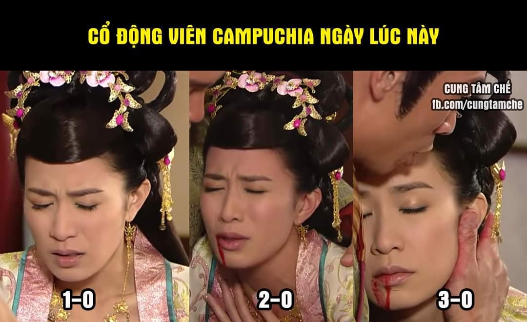 Diễn biến cảm xúc của fan Campuchia sau 45 phút đầu trận. (Ảnh của Cung tâm kế)