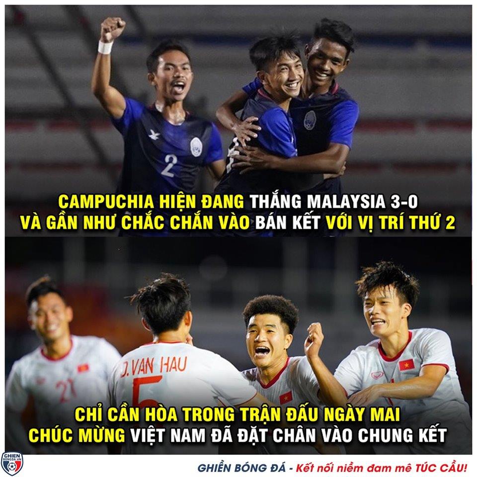 Fan Việt Nam đĩ “bão” sớm khi U22 Việt Nam chỉ cần hòa Thái Lan là đặt chân vào chung kết khi chỉ gặp U22 Campuchia ở bán kết. (Ảnh của Ghiền bóng đá)