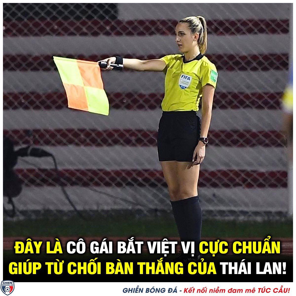 Đã xinh đẹp lại con giỏi chuyên môn, trọng tại biên xứng đáng là người hùng thứ 2 của Việt Nam trong trận chung kết. (Ảnh của Ghiền bóng đá)
