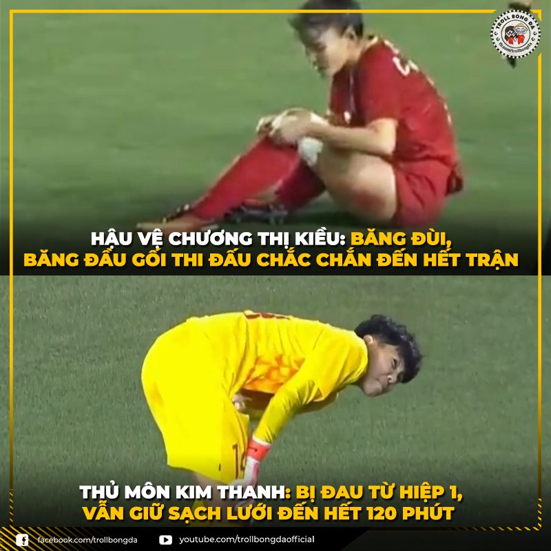 Tinh thần thi đấu quả cảm của các cô gái Việt Nam. (Ảnh của Troll bóng đá)