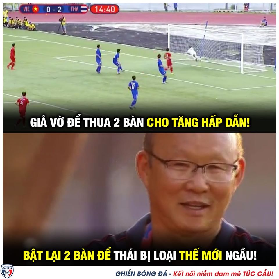 HLV Park Hang Seo lại hóa “phù thủy” giúp U22 Việt Nam có màn lội ngược dòng ấn tượng trước Thái Lan. (Ảnh của Ghiền bóng dá)