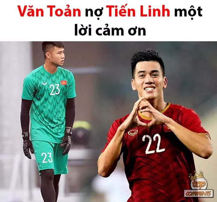 Văn Toản chắc có lẽ phải ngàn lời yêu thương tới Tiến Linh. (Ảnh của Top Comments)