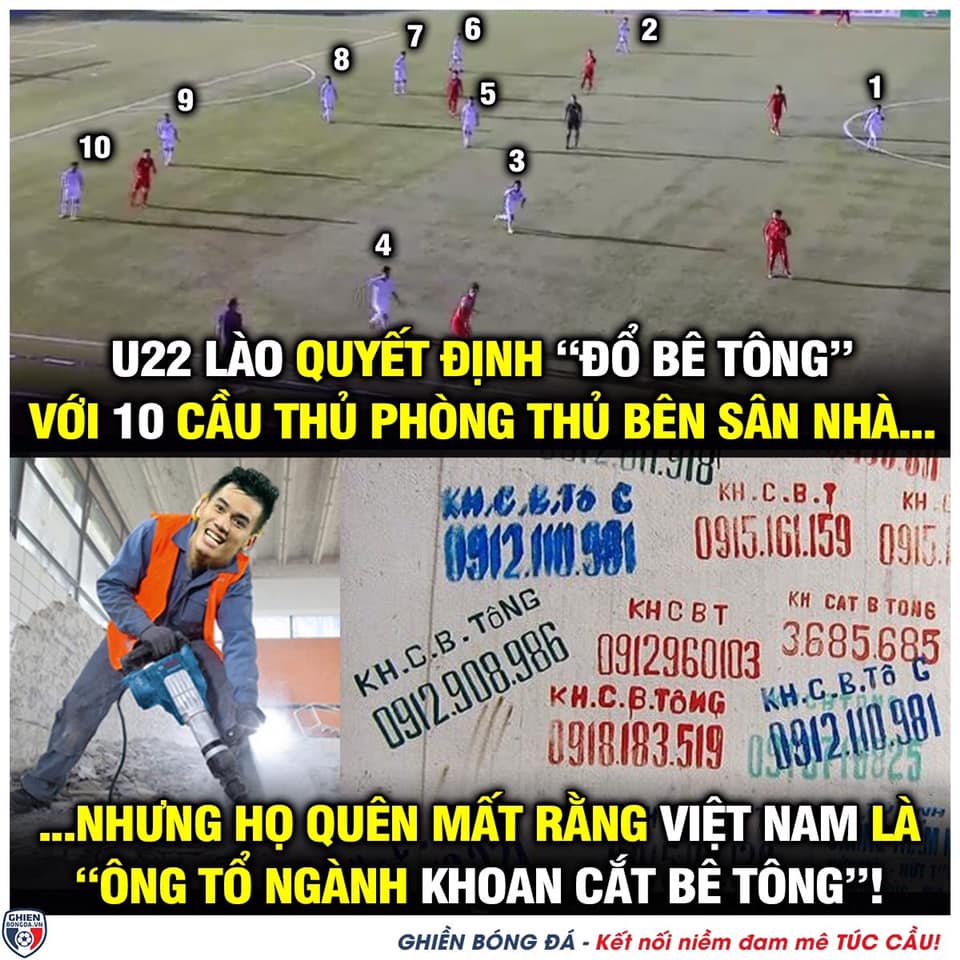 U22 Lào “giận tím người” khi đụng độ với “ông tổ ngành khoan cắt bê tông” Việt Nam. (Ảnh của Ghiền bóng đá)