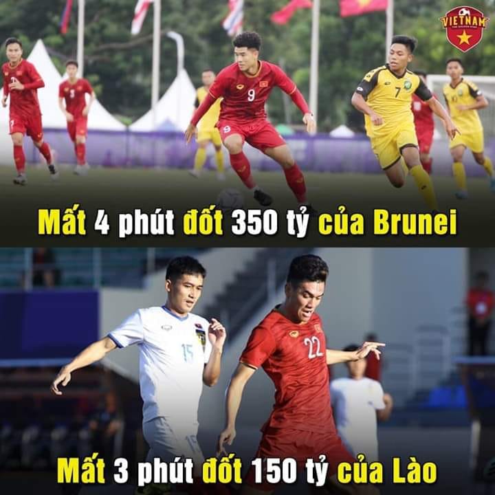 U22 Lào và U22 Brunei đều gặp cái kết giống nhau khi được treo thưởng tiền nếu cầm hoa được Việt Nam. (Ảnh của Kuviet)