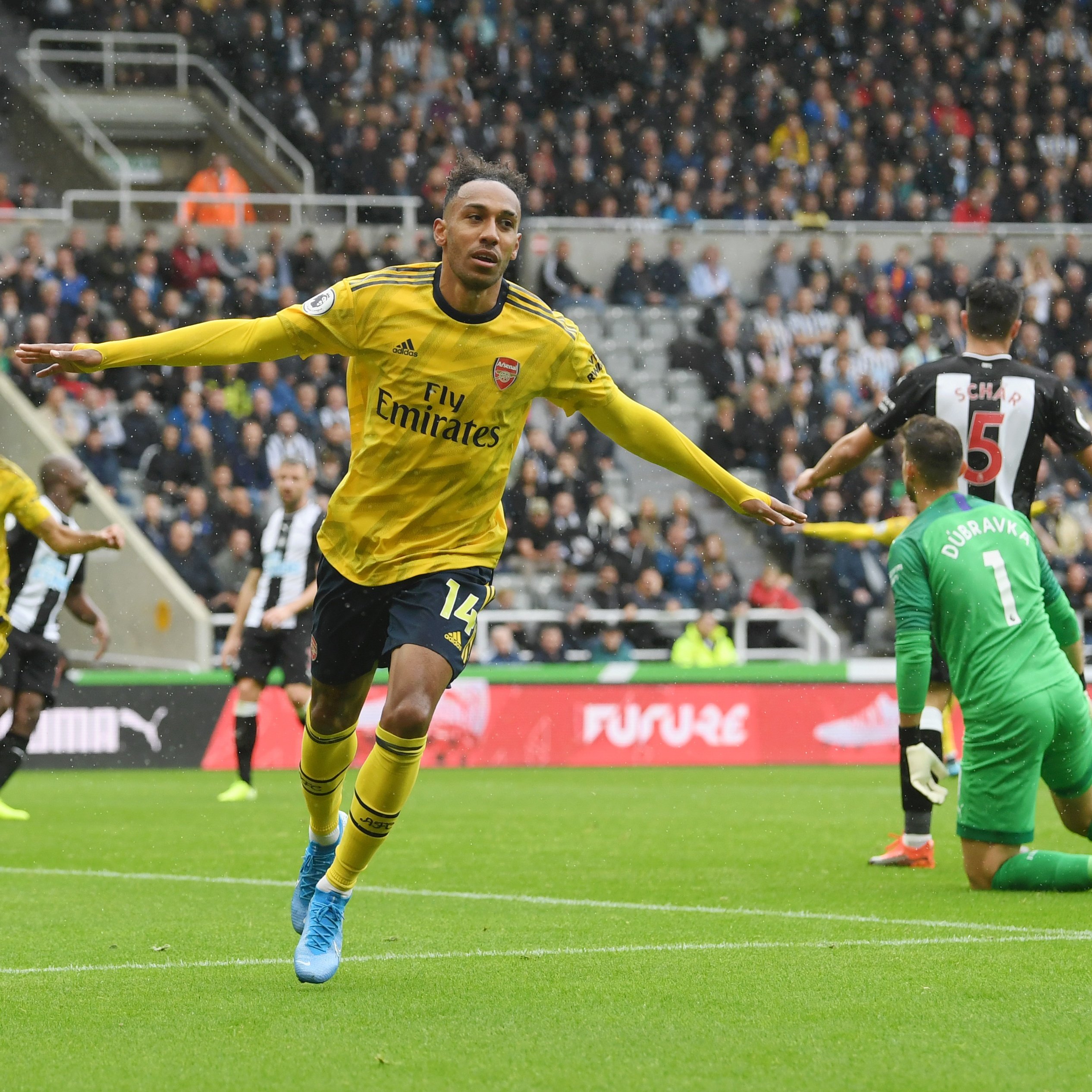 Phút 58, Aubameyang có pha vẩy má ngoài tinh tế làm tung lưới thủ thành CLB Newcastle.