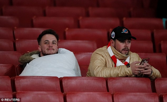 Khá ít người hâm mộ Arsenal vào sân theo dõi trận đấu với Man City dù vé đã bán hết. Thậm chí có fan còn mang theo chăn để đắp.