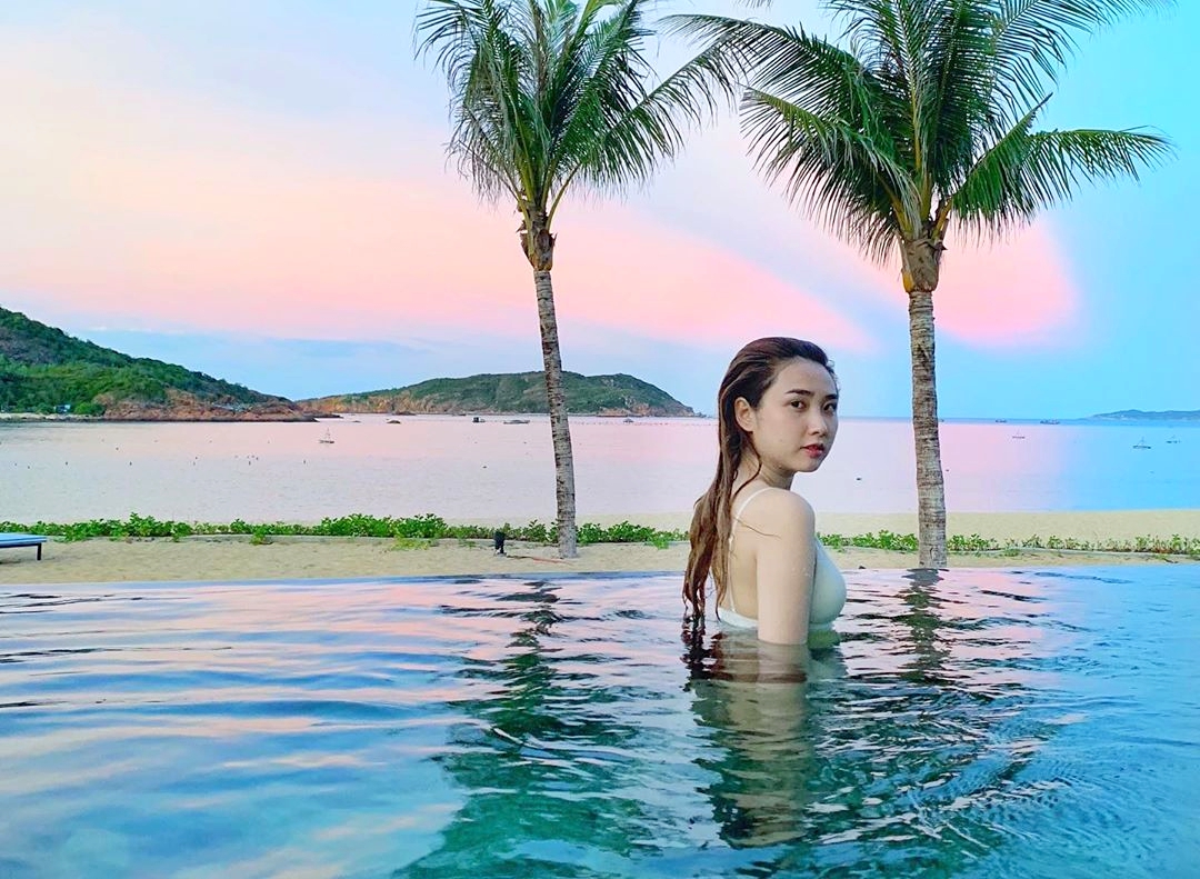 Hiện cô nàng đang nghỉ dưỡng tại một resort ở Quy Nhơn. Trên trang cá nhân, bạn gái cũ Bùi Tiến Dũng không ngần ngại khoe body nóng bỏng. Vóc dáng cân đối giúp Thanh Mèo chinh phục được cả những thiết kế bikini nhỏ nhất. Dù không chia sẻ quá nhiều ảnh bikini trên mạng xã hội nhưng mỗi lần lộ diện Thanh Mèo đều khiến fan ngây ngất.