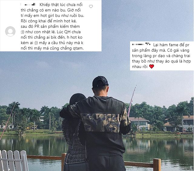 “Lại hám fame để PR sản phẩm đây mà. Cô gái vàng trong làng PR dạo và chàng trai thay bồ như thay áo quá là hợp nhau”.